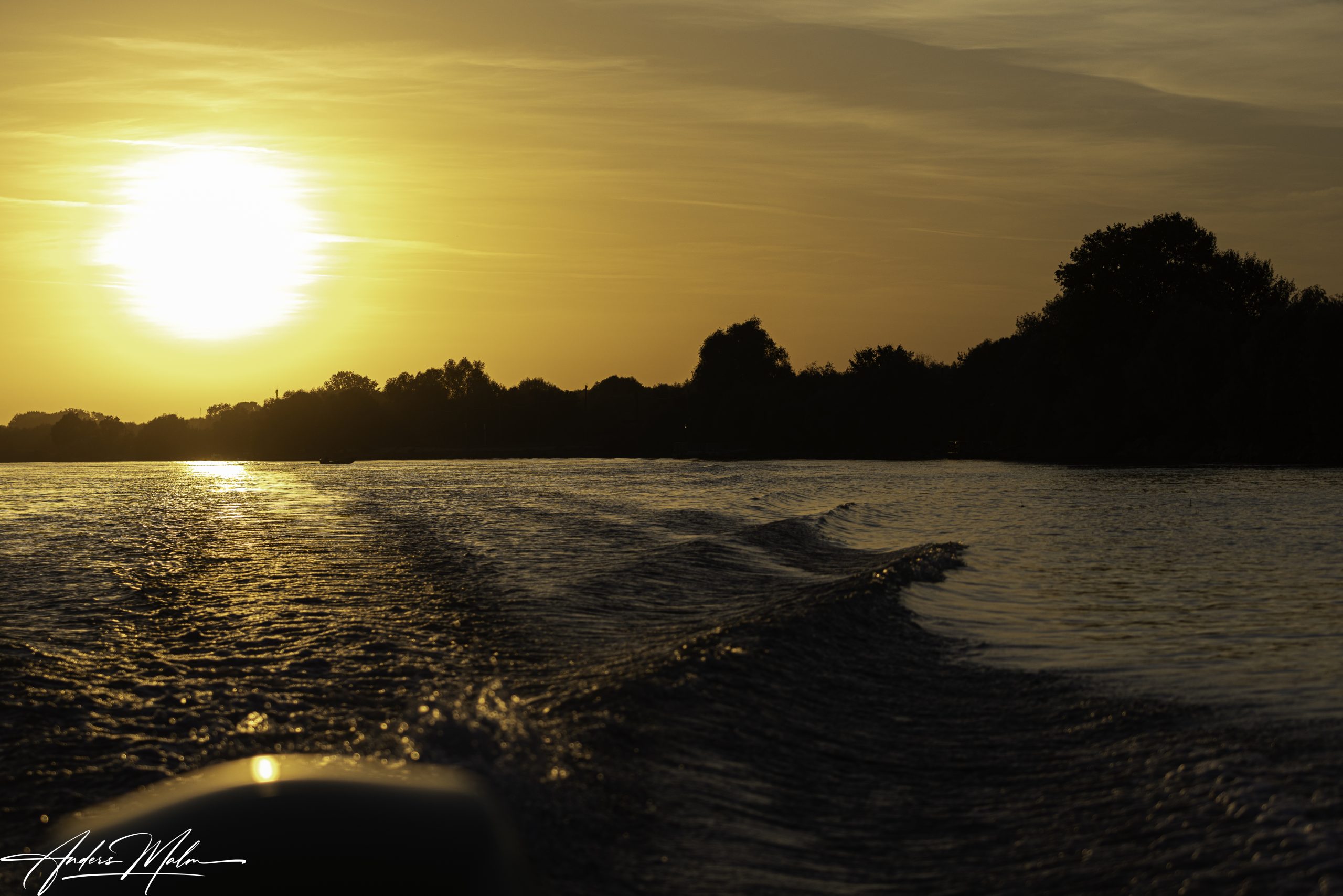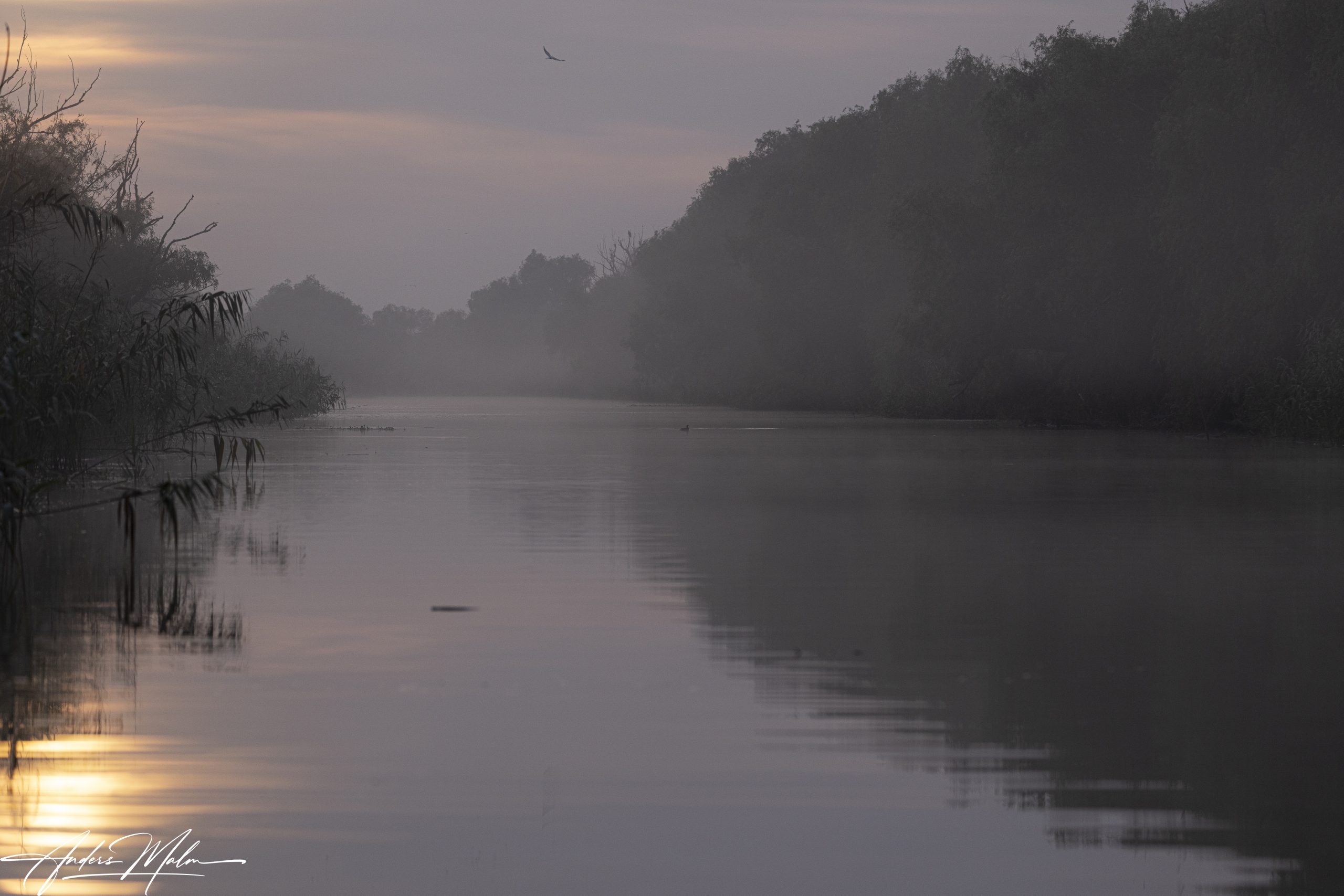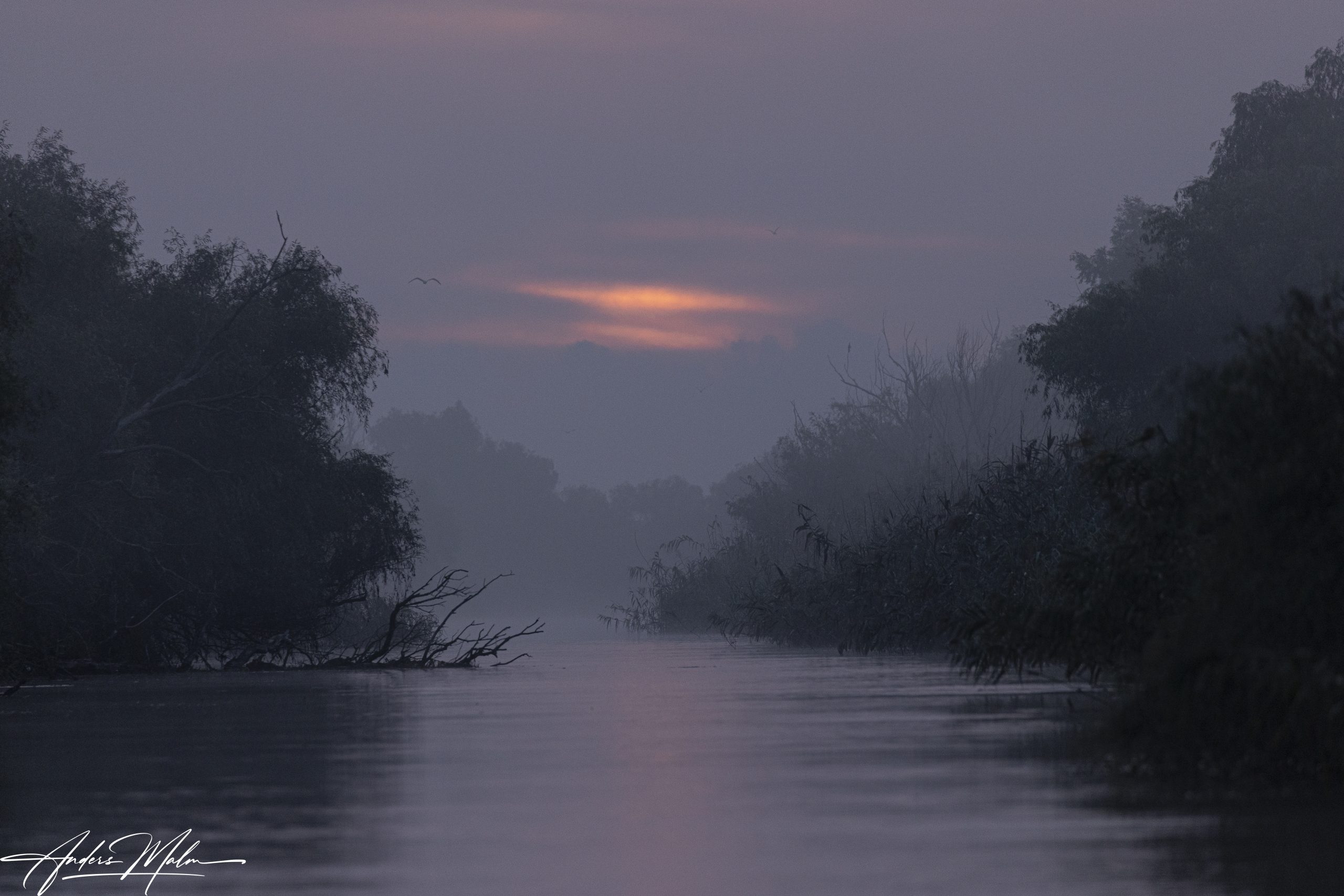 När vi gett upp på Pelikanerna beger vi oss in i kanalen i vars ände solen sakta går upp och ger oss ett fantastiskt ljus.