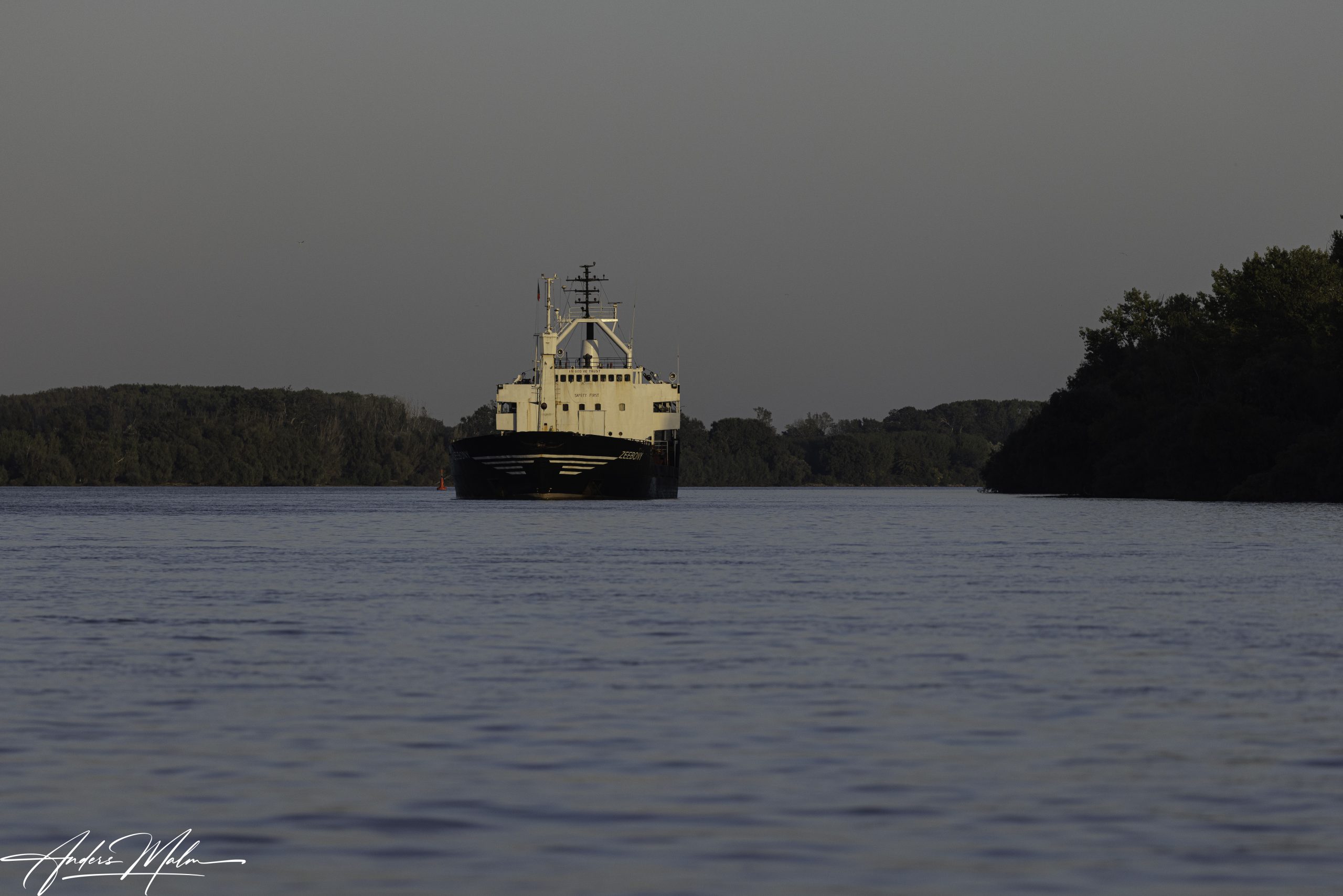 I väntan på att solen skall gå upp glider vi fram i det blå morgonljuset.