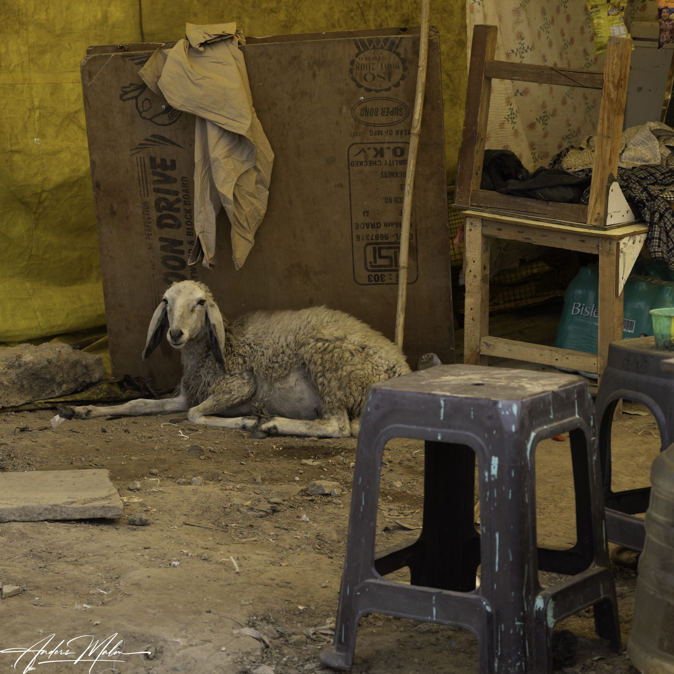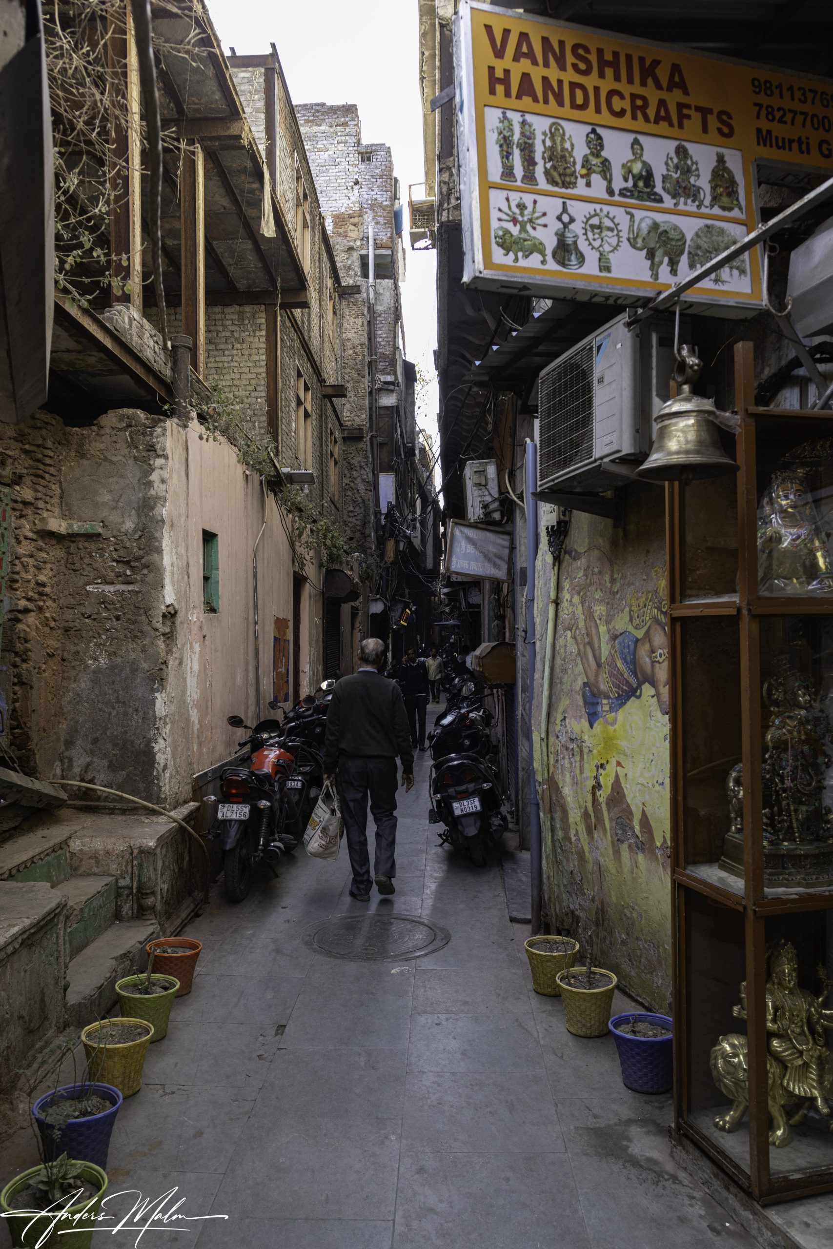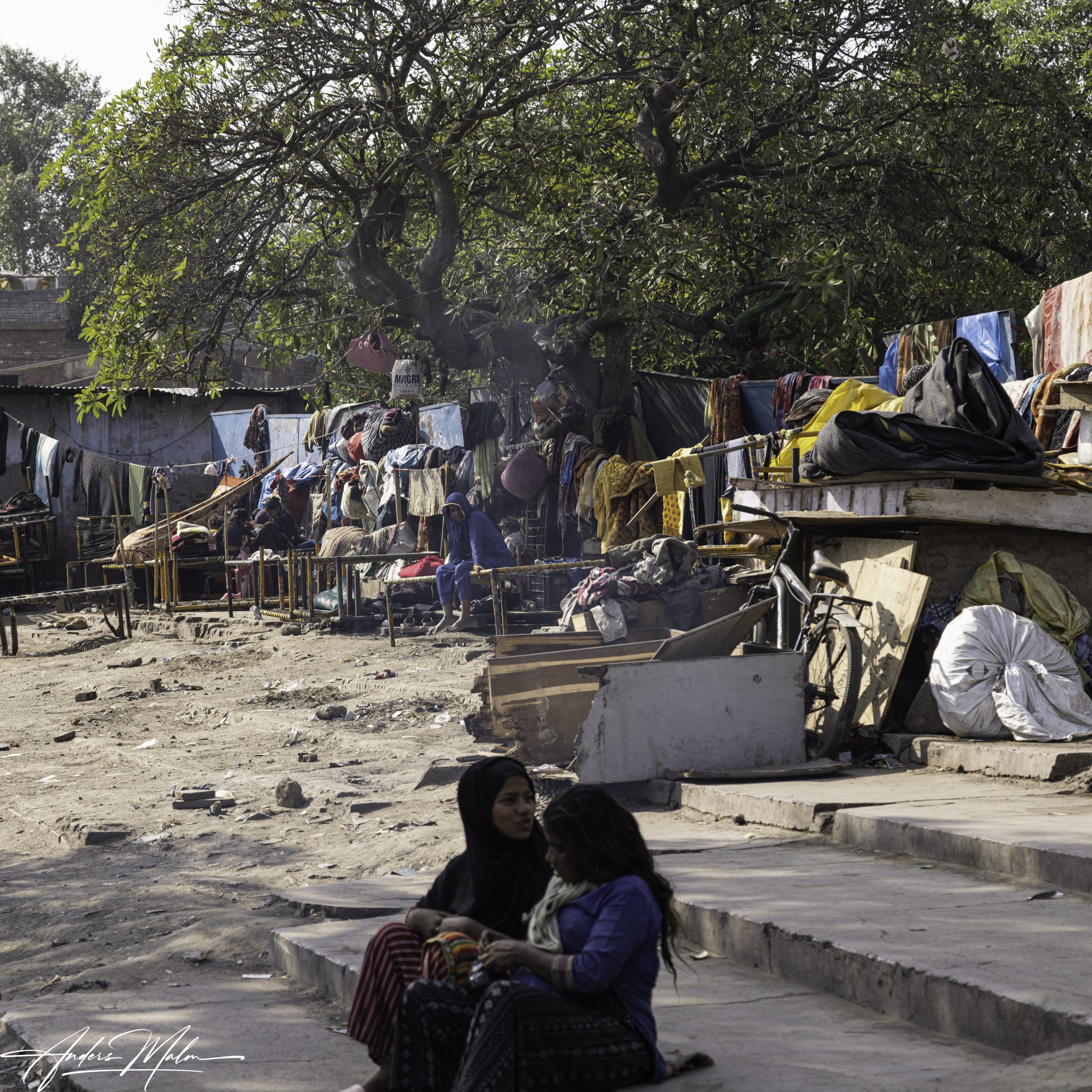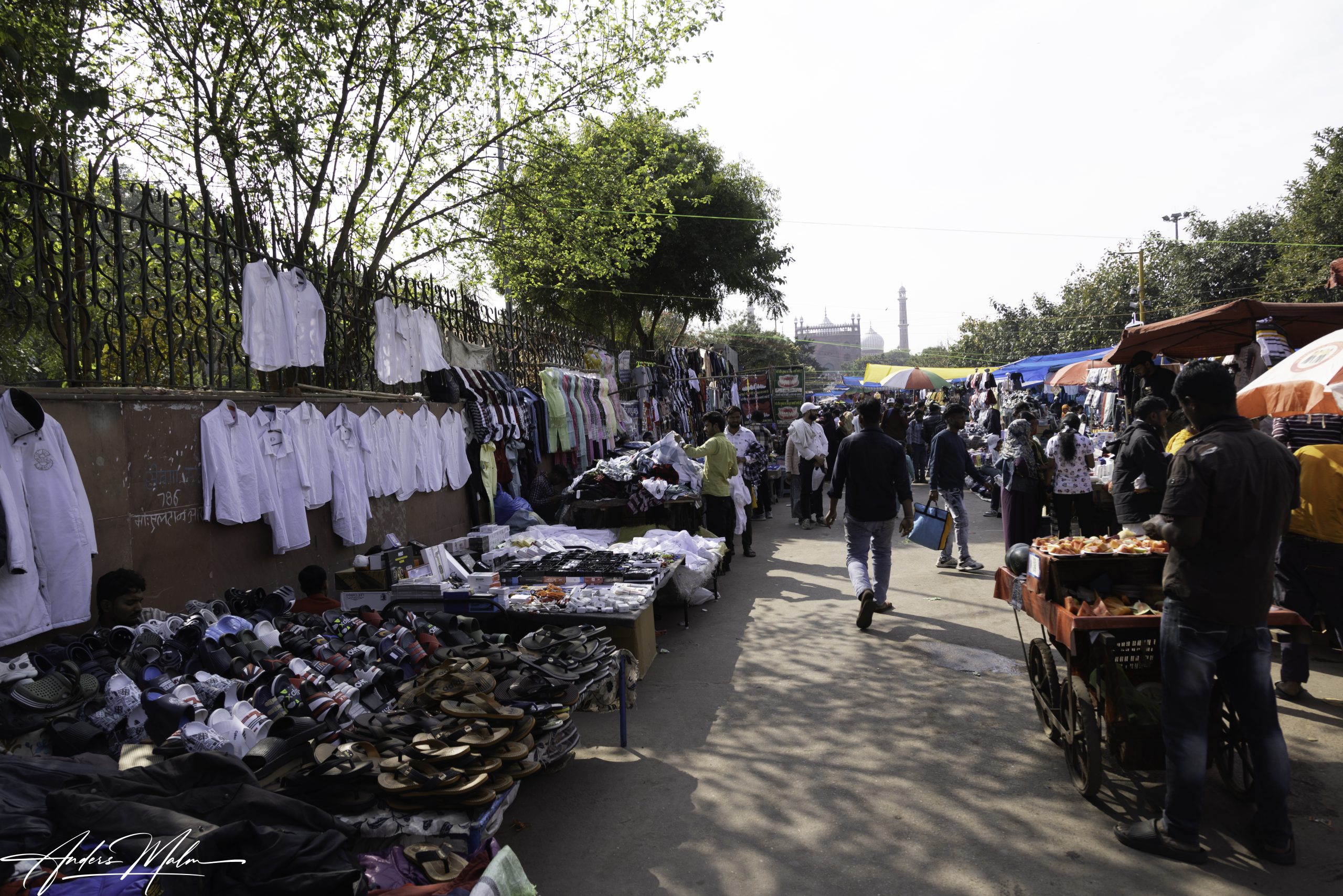 I utkanten av marknaden bor fattiga människor i skjul och tält. Vi går vidare till den mer permanenta marknaden där försäljningen sker från små butiker ibland med ett stånd utanför. Här är gatorna så smala att inga bilar tar sig fram men det hindrar inte en intensiv trafik med motorcyklar som alla tutar febrilt.