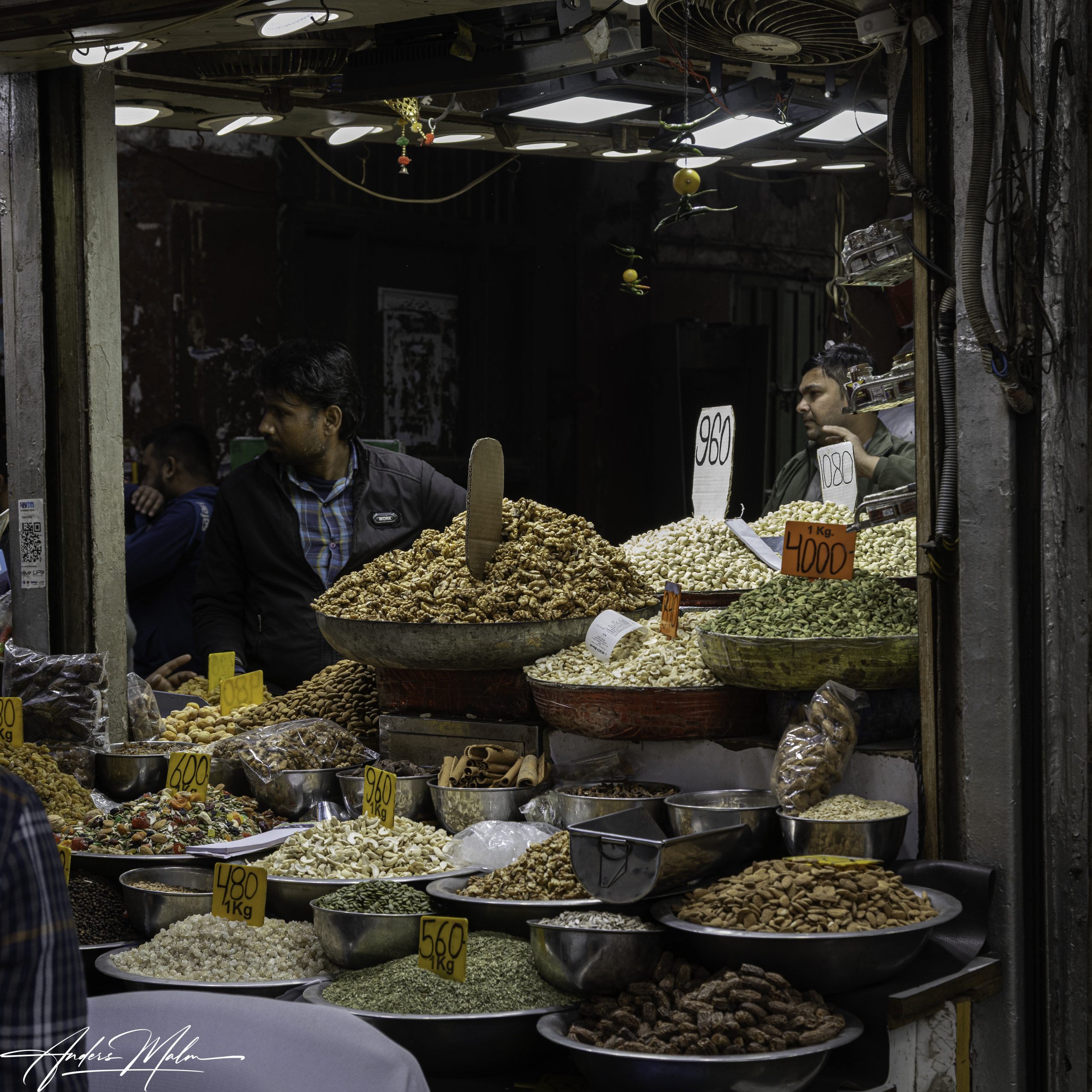 I en del säljs brölloppstillbehör, i en annan kryddor. Det finns även små stånd som säljer streatfood, mycket ser spännande och gott ut men man gör nog klokt i att inte testa första dagen på resan.