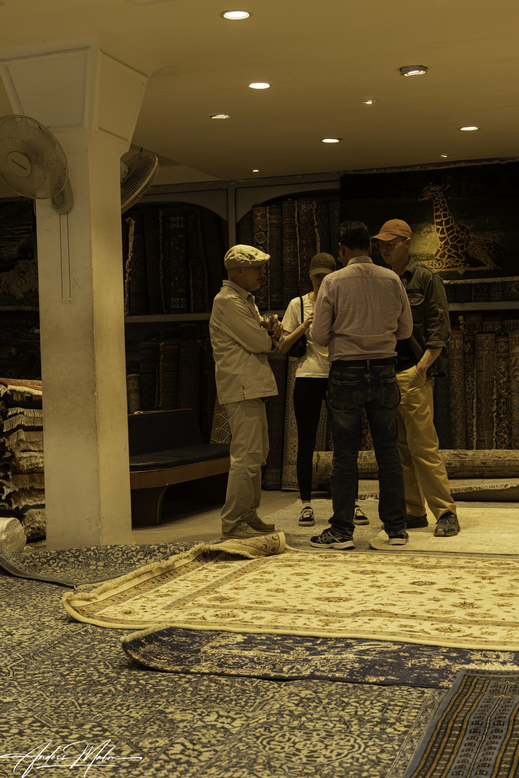 För att vi inte skall behöva stå och vänta på bussen görs planerna om och det beslutas att vi skall åka och titta på tillverkningen av handknutna äkta mattor. Vi klämmer in oss i tre tuctuc och sen bär det av i en rasande fart genom staden. Med andan i hand och livet i behåll anländer vi till verkstaden där man tillverkar mattorna. Man tillverkar naturligtvis mattor med traditionella mönster men även med moderna utryck.